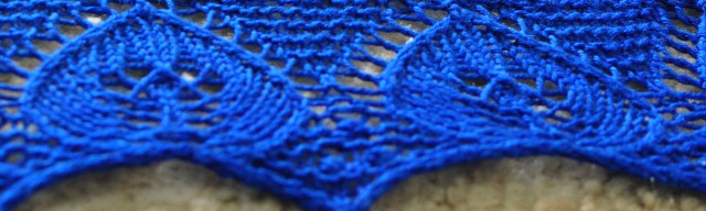 Here I attach my own swatch of the mystery shawl! How do you like the leaf pattern? I am using Wollmeise 100% in Kornblume colorway for this shawl. If you want to see more beautiful swatches that are made by knitters who participate in this KAL, you can find them in my group in Ravelry. I guess most of the knitters are still having hard time to decide on nupps making or beadings or not!