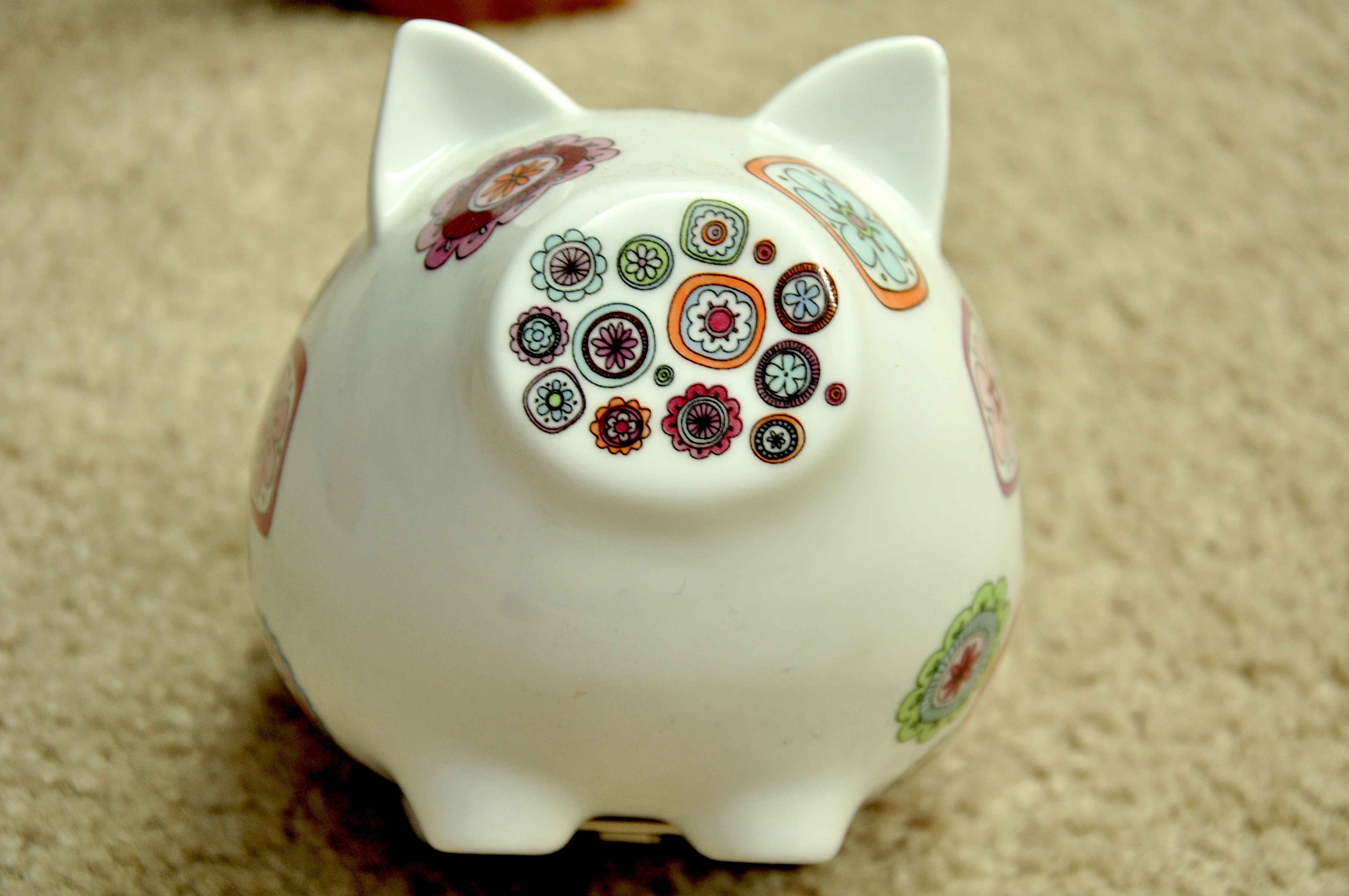 My guess is $63.47. Well actually it’s my husband’s guess. 😉 Your penny bank is adorable.